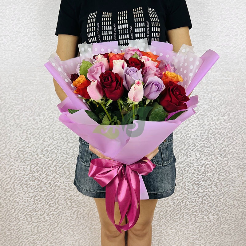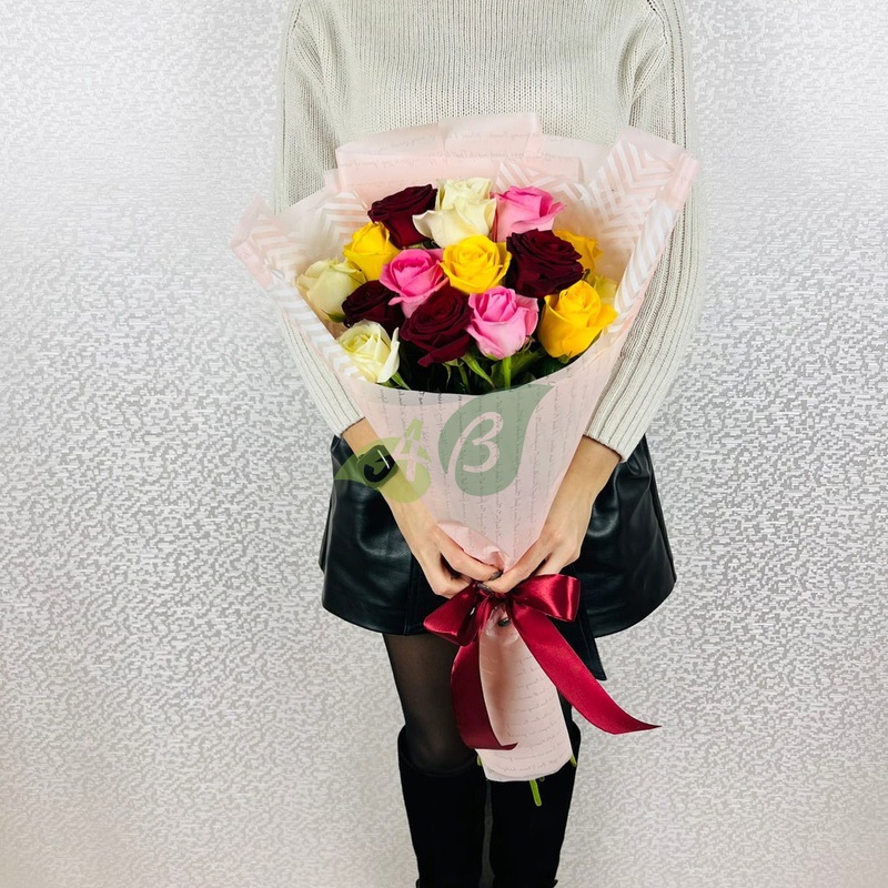 Букет "25 разноцветных роз" (60 см)