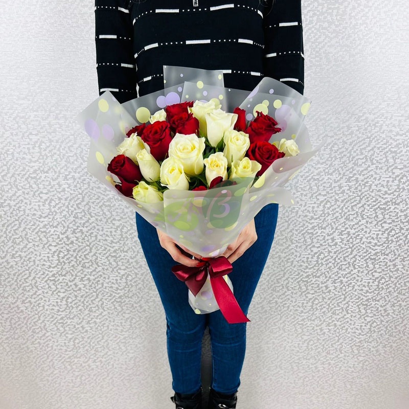 Букет "25 красных и белых роз" (40 см)