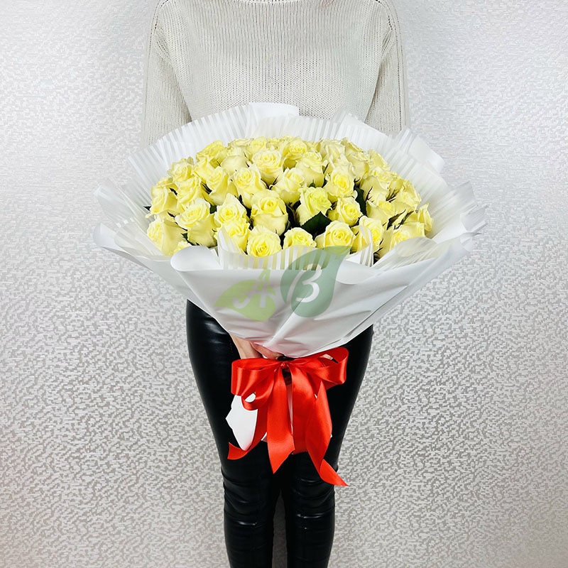 Букет "51 белая роза" Аваланж (60 см)