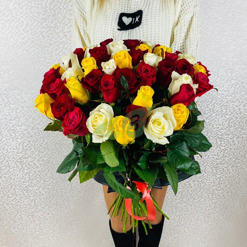 Букет "51 красная, белая и розовая роза" (60 см)