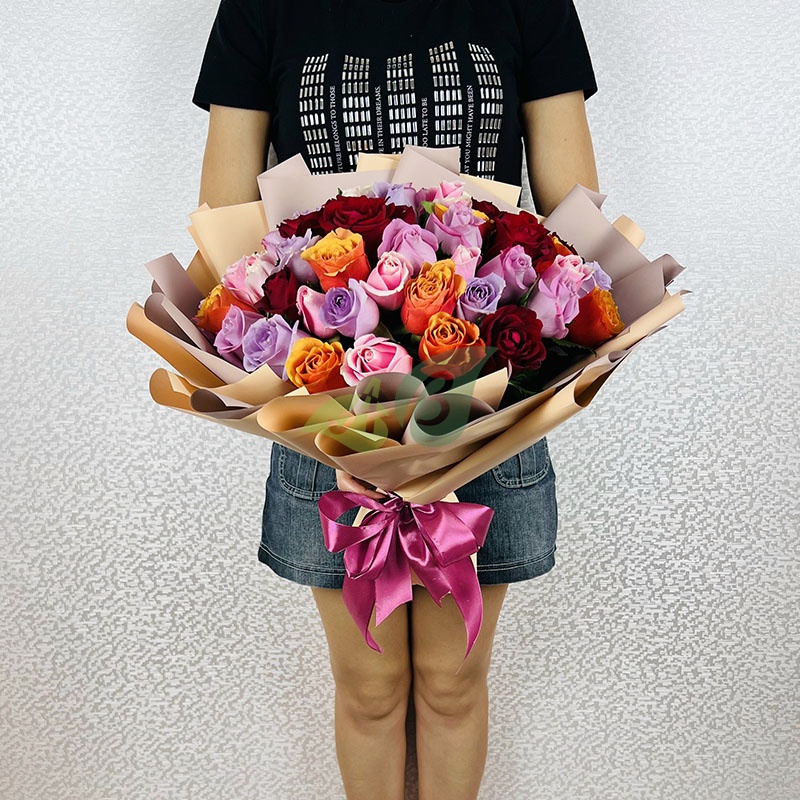 Букет "51 разноцветная роза" (60 см)