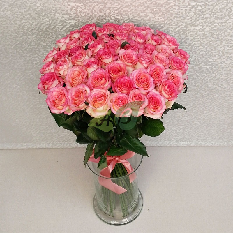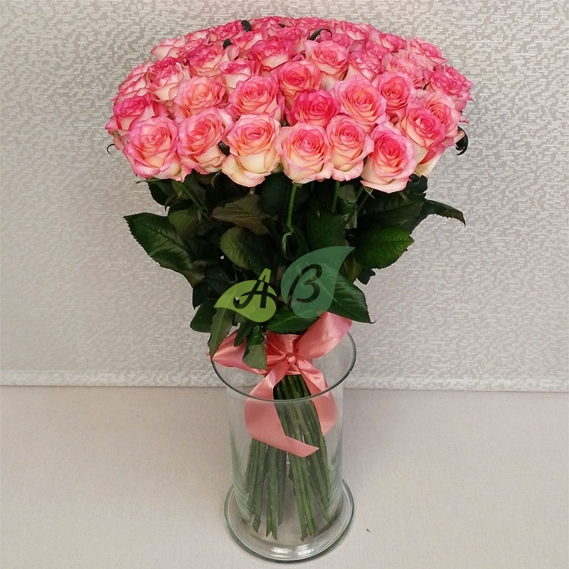 • Роза - 51 штука, цвет - бело-розовый, длина стебля - 60 см;